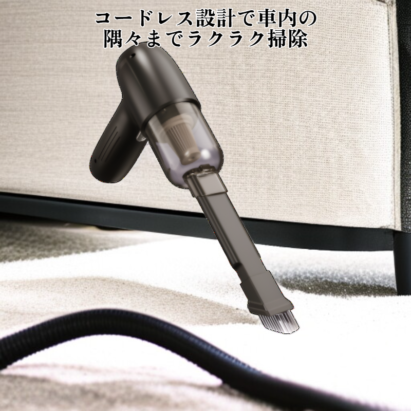 ● 強力な吸引力でホコリやゴミをしっかり吸い取り、車内をいつでも清潔に保つことができます。
